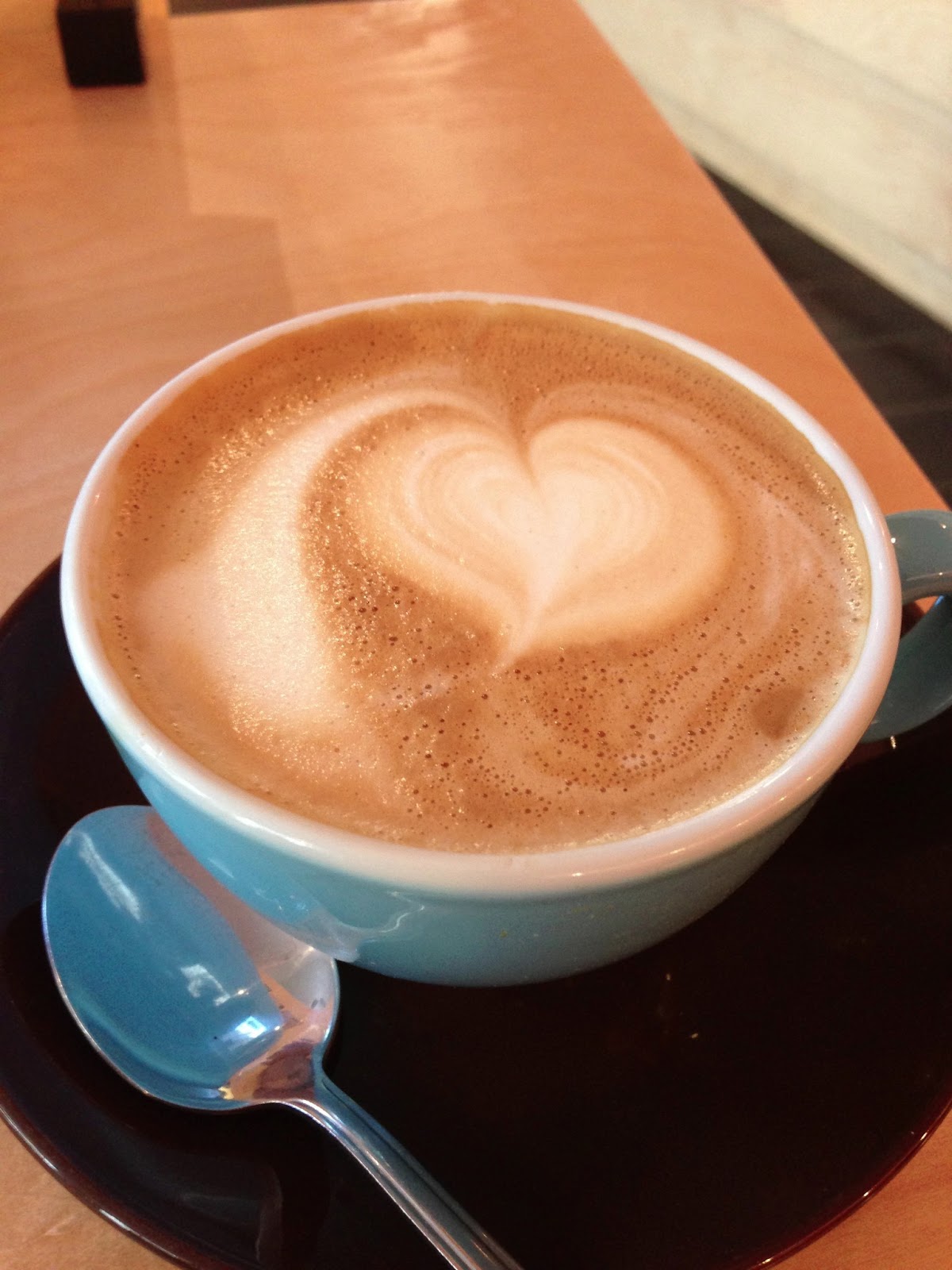 | I really wanted Indian food, but I felt awkward asking for a table for one at a busy restaurant where other, larger groups, were waiting. So after wandering for a bit I found this little place called "Hula" that was actually a juice bar/art gallery. They serve carnivorous, vegetarian, vegan and gluten free foods as well. I had a yummy veggie wrap with guacamole, and this pretty latte. |