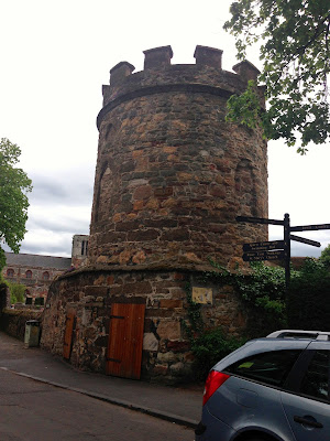 Val and I went into Haddington today to pick up some food for tea tonight at the Tesco (their large supermarket). We also drove past the hospital I will be working at so I would be familiar with the area, and we also walked around Haddington. I was feeling much like a tourist (which of course I am) so all of these photos were just quick shots from my phone and not as clear as I would like. I'll post more when I take some too and from work! There was something going on in town today for young kids, but I did hear bagpipes earlier in the morning. Apparently there is a really good pipe band in town, but the family I'm living with HATES the pipes, so I may have to go enjoy them alone sometime! Val also drove by the hospital where I will be working, and showed me some gennels that will get me there faster though the town. "Gennel" is the Scottish word for "snicket", which is the English word for "alley." The more you know!